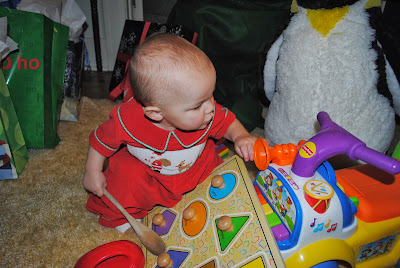 *You talk a lot! (Like me!) You say "Ida" for apple and "Aga" for water. You also say something like "at at" and I'm thinking that means "What's that?" You are still saying dada (no mama yet), uh-oh, and shoes. You love when we make animal noises and you often imitate them. You love your See and Say and demand that we spend a good 30 minutes listening to the recordings of the animals over and over!